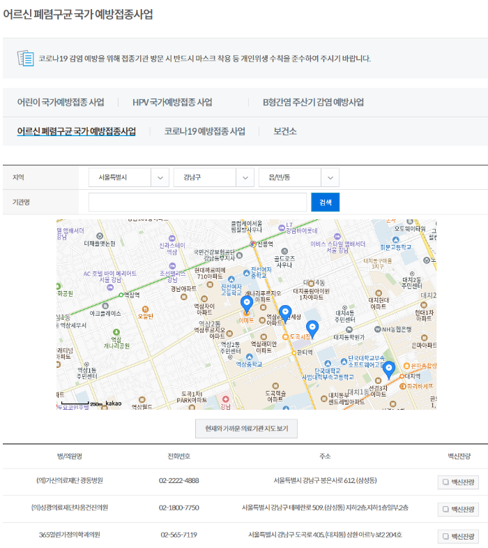 폐렴구균 지정병원은 아래에서 확인이 가능합니다.